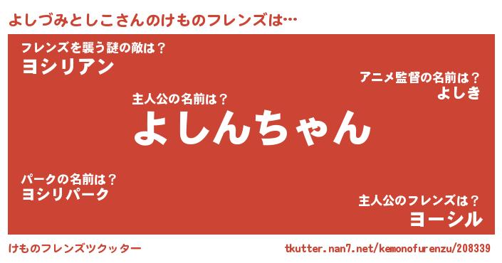 | ヘコむあだ名 | 『よしふぇ~』『よしづみとしこ(震え声)』 |