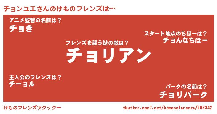 | 自動車の名前っぽいあだ名 | 『チンR』『チルトョパン』『チウディ』 |