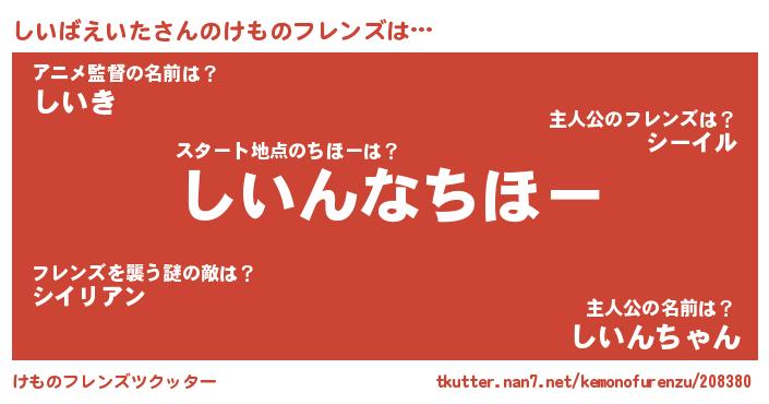 | ヒーロー風カッコイイあだ名 | 『仮面シイダー』『銀牙騎士シイ』 |