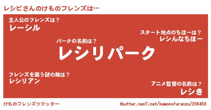 | 意味不明あだ名 | 『自称レシピ』『永久保存レシピ』 |