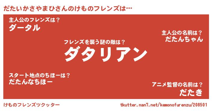 | 料理風あだ名 | 『だたいかさやまひのトマト煮』 |