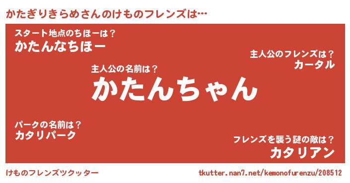 | 男性向けラノベタイトル風あだ名 | 『うちのかたぎりきらめが世界を掌握している!』 |