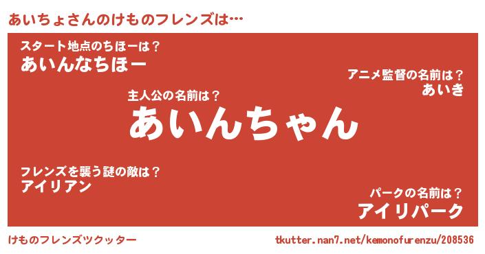 | 意味不明あだ名 | 『住所不定無職あいちょ(65歳)』 |
