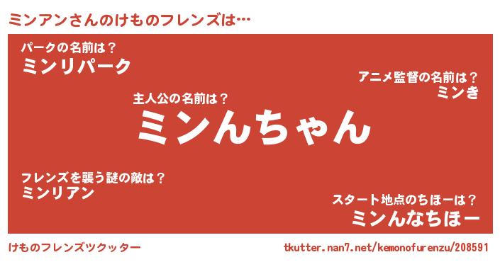 | 意味不明あだ名 | 『ペロリンミンアン』『自称ミンアン』 |