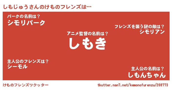 | 意味不明あだ名 | 『とにかく怪しいしもじゅう』 |