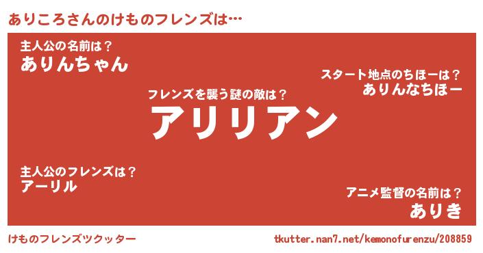 | 欧米人風あだ名 | 『ダニエルありころ』『マイケルありころ』 |