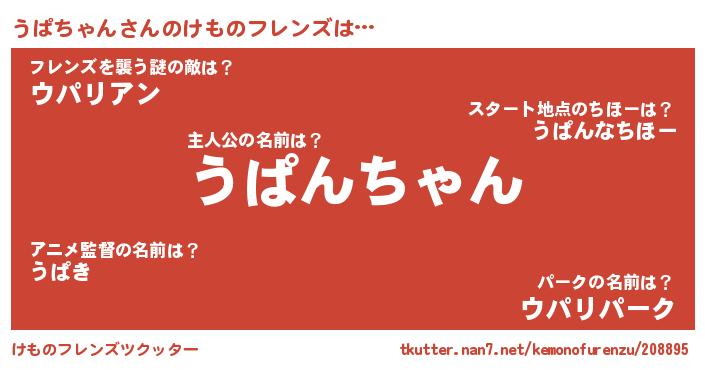 | 意味不明あだ名 | 『住所不定無職うぱちゃん(93歳)』 |