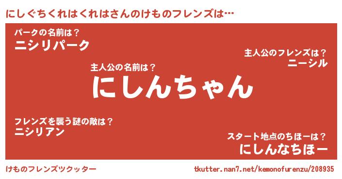 | 2回繰り返すあだ名 | 『にしにし』『むらむら』『ににしし』 |