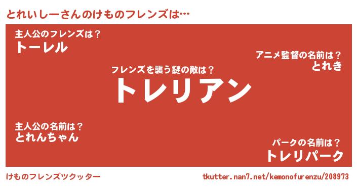 | ヘコむあだ名 | 『とれいしー(苦笑)』『とれぷりん』 |