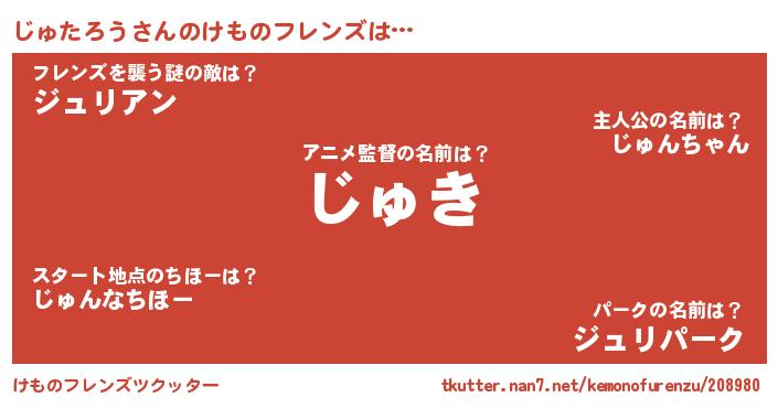 | ヒーロー風カッコイイあだ名 | 『幻影騎士ジュ』『慈愛の使者じゅたろう』 |
