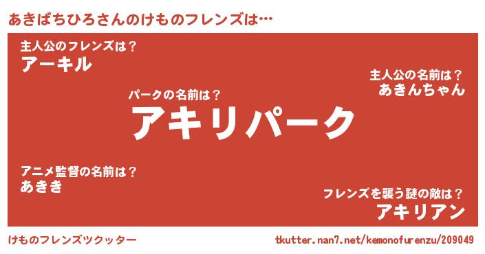 | 肩書あだ名 | 『あきばちひろ大尉』『あきばちひろ閣下』 |