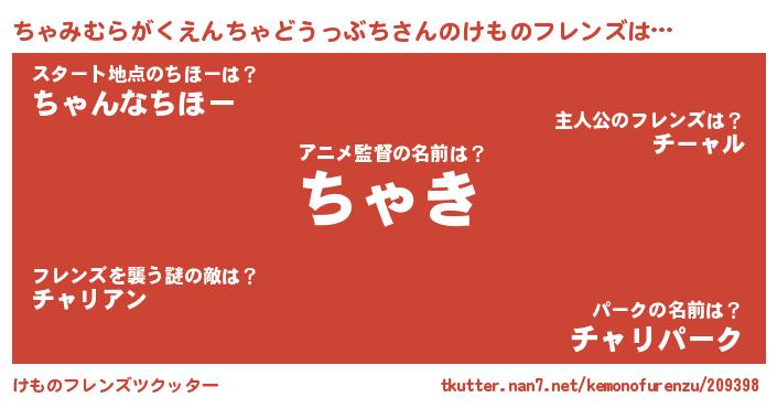 | 男性向けラノベタイトル風あだ名 | 『この素晴らしい世界にちゃみむらがくえんちゃどうっぶちを!』 |
