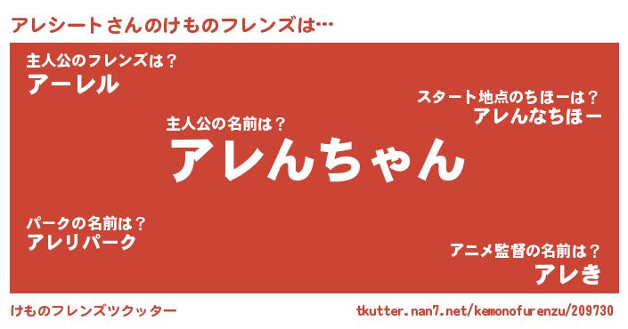 | 男性向けラノベタイトル風あだ名 | 『アレシートの憂鬱』『緋弾のアレシート』 |