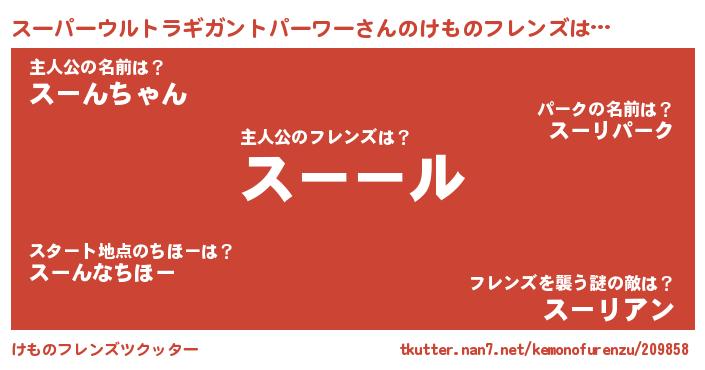 | 男性向けラノベタイトル風あだ名 | 『スーパーウルトラギガントパーワーという概念が存在しない退屈な世界 』 |