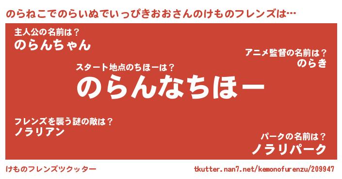 | 2回繰り返すあだ名 | 『ののらら』『たぷたぷ』『のらのら』 |