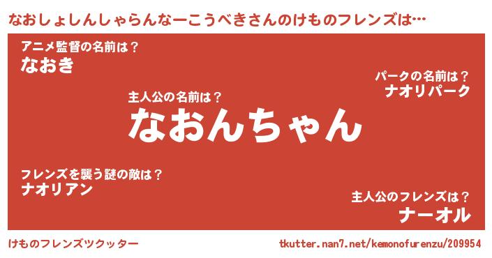 | 意味不明あだ名 | 『住所不定無職なおしょしんしゃらんなーこうべき(89歳)』 |