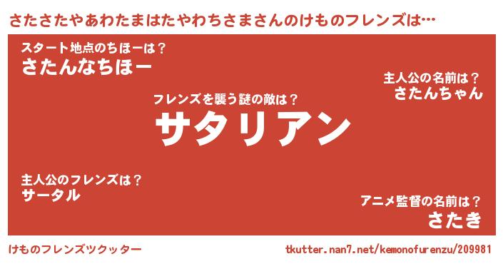 | 男性向けラノベタイトル風あだ名 | 『さたさたやあわたまはたやわちさまに滅ぼされるだけの簡単なお仕事です』 |