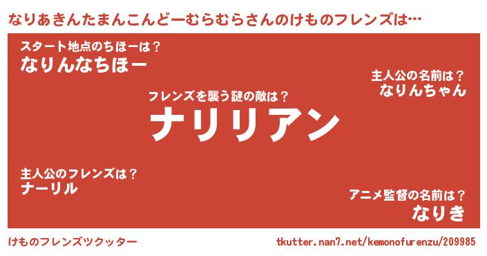 | 男性向けラノベタイトル風あだ名 | 『なりあきんたまんこんどーむらむら~年齢イコール彼女いない歴の魔法使い~』 |