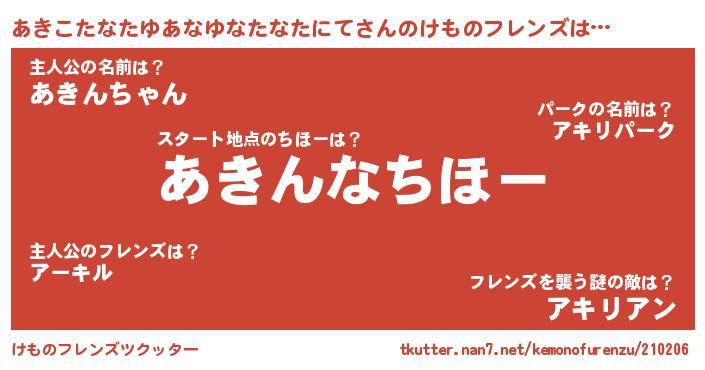 | ファンタジー風あだ名 | 『エターナルアキコタナタユアナユナタナタニテー』 |