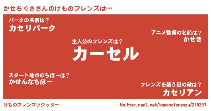 | ヘコむあだ名 | 『かせちぐさ(小並感)』『かせぷりん』 |