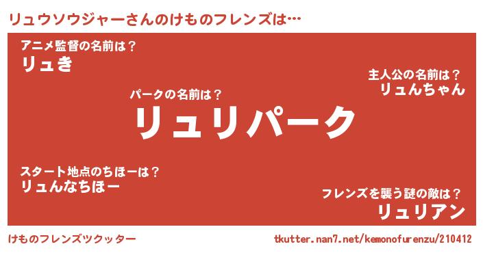 | 意味不明あだ名 | 『住所不定無職リュウソウジャー(3歳)』 |