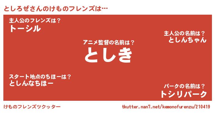 | ピコ太郎風あだ名 | 『トシ史郎』『ピコト郎』『トコ五郎』 |