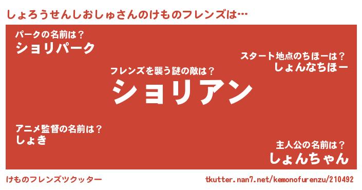 | 意味不明あだ名 | 『住所不定無職しょろうせんしおしゅ(5歳)』 |