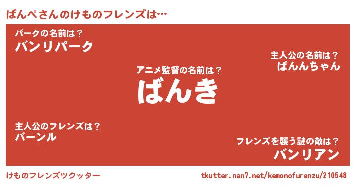 | 意味不明あだ名 | 『とにかく怪しいばんぺ』『自称ばんぺ』 |