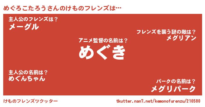 | ヘコむあだ名 | 『めぐぷりん』『めぐろこたろう(震え声)』 |