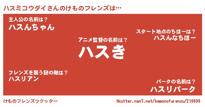 | ヒーロー風カッコイイあだ名 | 『暗黒騎士ハス』『仮面ハスダー』 |