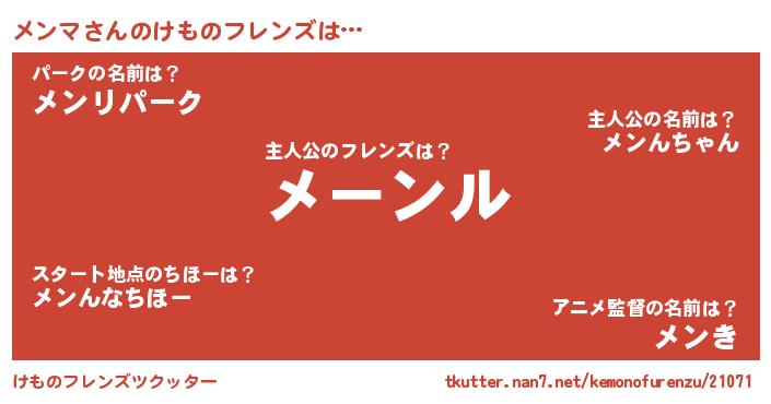 | 意味不明あだ名 | 『永久保存メンマ』『自称メンマ』 |