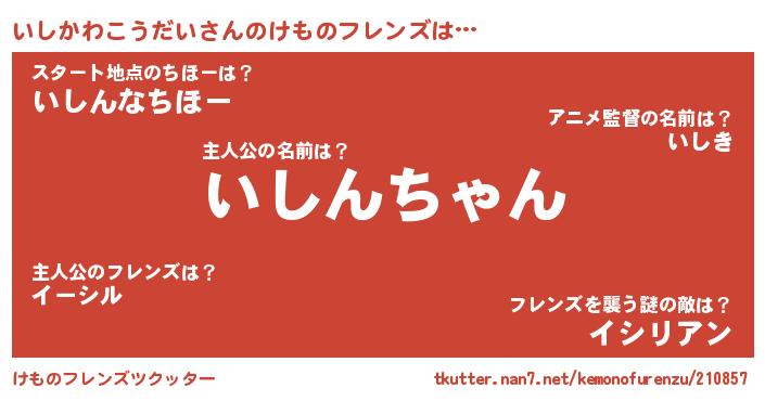 | 2回繰り返すあだ名 | 『いしいし』『とんとん』『いいしし』 |