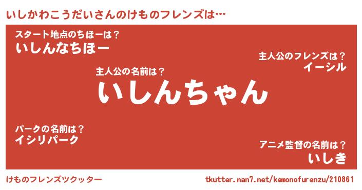 | ピコ太郎風あだ名 | 『イコ史郎』『ピイ三郎』『イシ史郎』 |