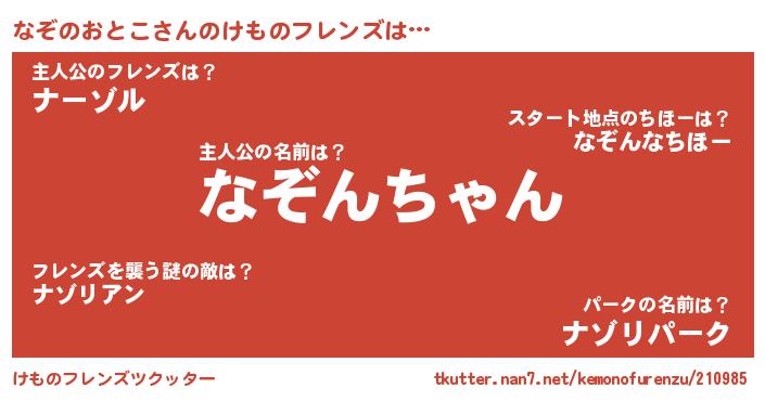 | ヒーロー風カッコイイあだ名 | 『スーパーナゾノオトコ』『仮面ナゾダー』 |