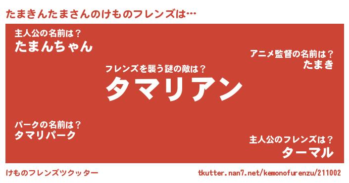 | 市区町村名 | 『たま田谷区』『たま島市』 |