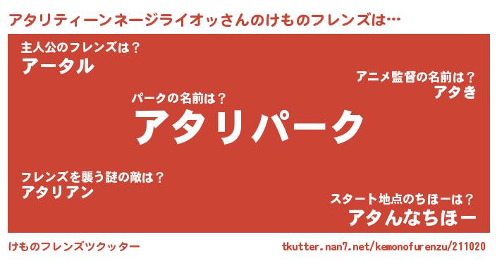 | ファンタジー風あだ名 | 『ゼアタトゥ』『アタディッシュ』 |