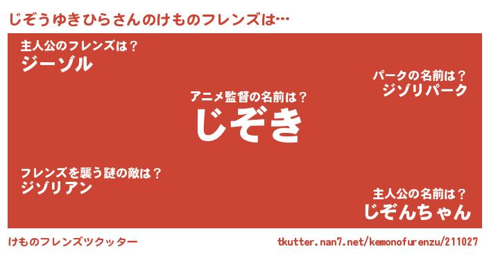 | ピコ太郎風あだ名 | 『ジゾ四郎』『ピコジ郎』『ジコ六郎』 |