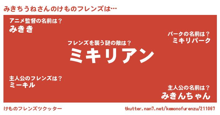 | 意味不明あだ名 | 『住所不定無職みきちうね(6歳)』 |