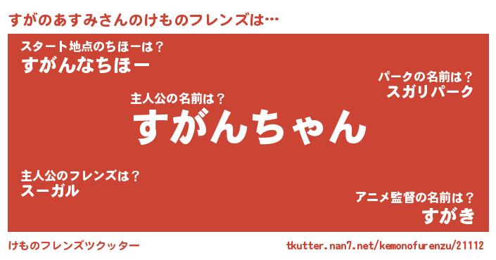 | 2回繰り返すあだ名 | 『すがすが』『とくとく』『すすがが』 |