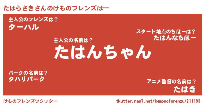 | ファンタジー風あだ名 | 『タハフェル』『タハディッシュ』 |