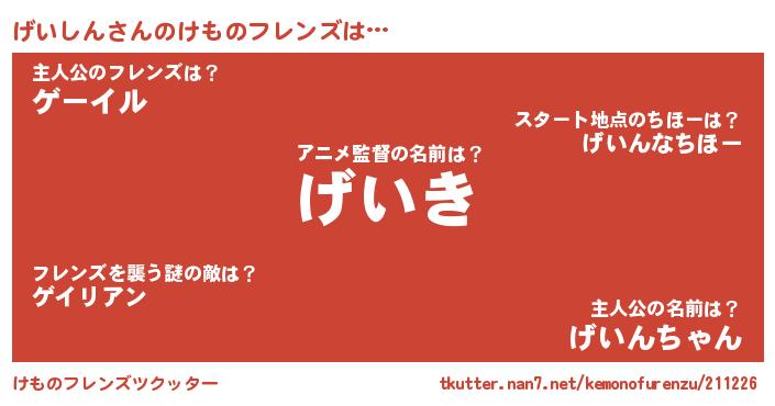 | 意味不明あだ名 | 『住所不定無職げいしん(13歳)』 |