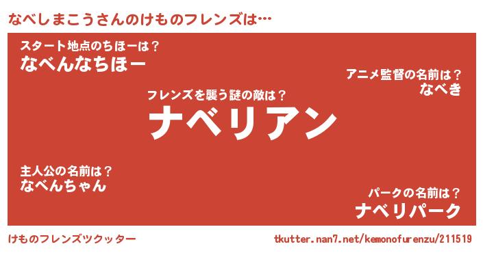 | 男性向けラノベタイトル風あだ名 | 『おまえをオタクにしてやるから、俺をなべしまこうにしてくれ! 』 |