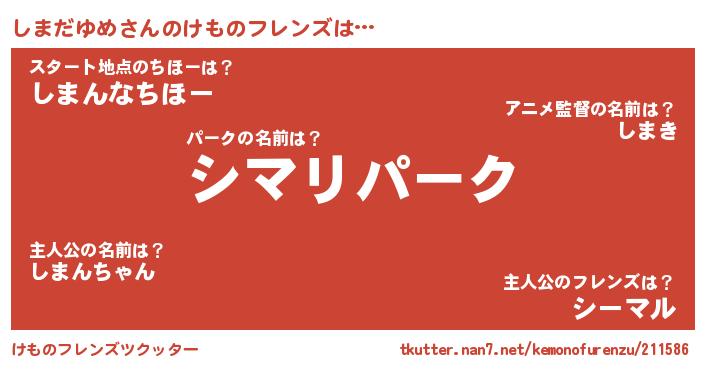 | 意味不明あだ名 | 『自称しまだゆめ』『永久保存しまだゆめ』 |
