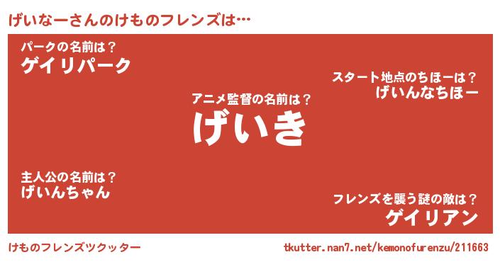 | 料理風あだ名 | 『げいなーの豆乳スープ』 |