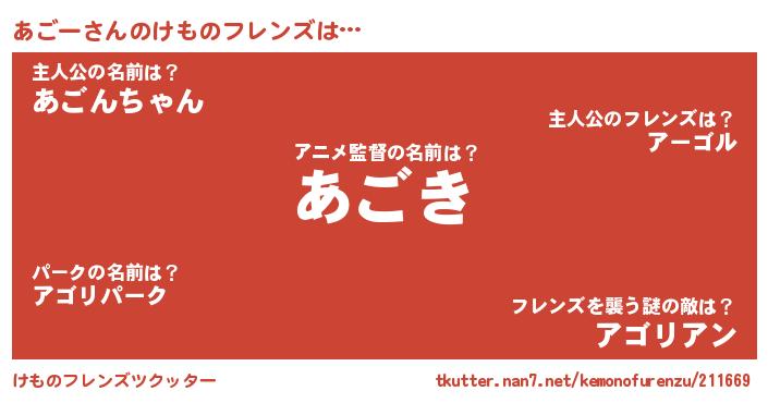| 意味不明あだ名 | 『とにかく怪しいあごー』 |