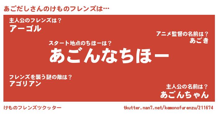 | ファンタジー風あだ名 | 『エターナルアゴダシー』『アゴフェル』 |
