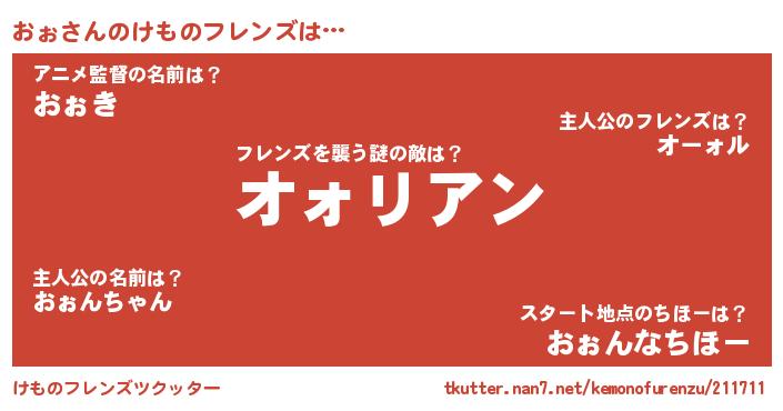 | 2回繰り返すあだ名 | 『ぶるぶる』『にたにた』『おおぉぉ』 |