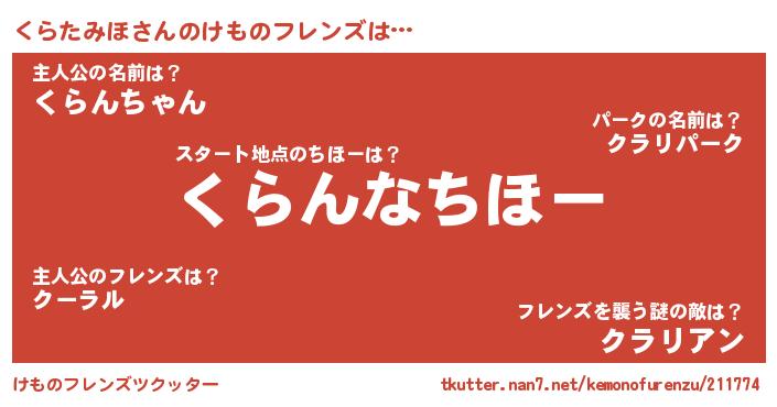 | 2回繰り返すあだ名 | 『くくらら』『ぞわぞわ』『くらくら』 |