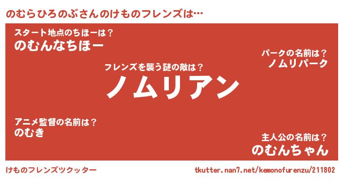 | 男性向けラノベタイトル風あだ名 | 『おまえをオタクにしてやるから、俺をのむらひろのぶにしてくれ! 』 |