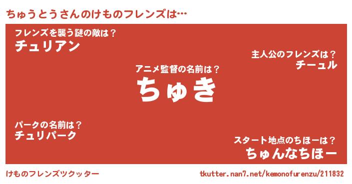 | ヒーロー風カッコイイあだ名 | 『炎刃騎士チュ』『慈愛の使者ちゅうとう』 |